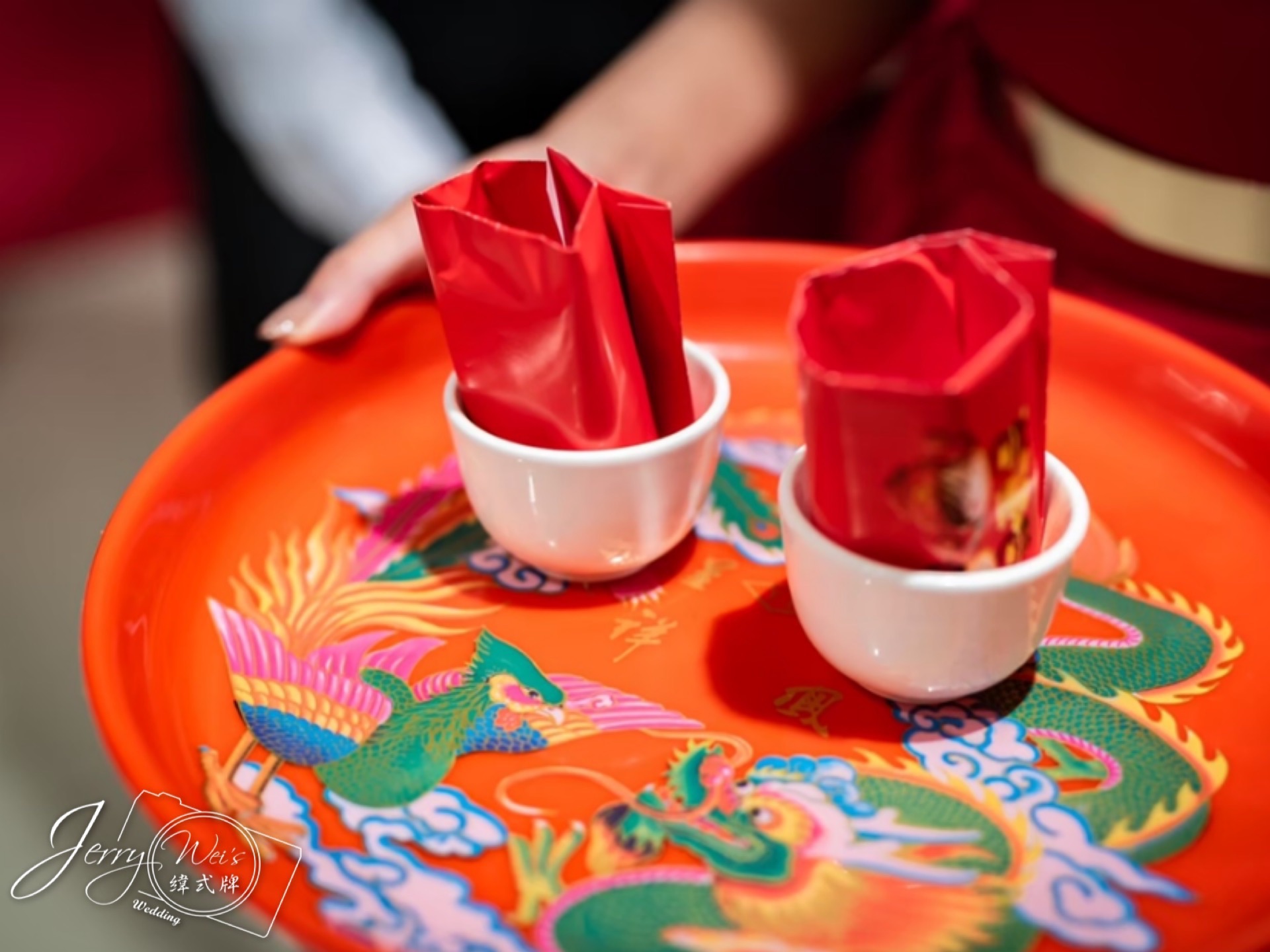 而與訂婚奉茶最大不同的地方,就是結婚敬茶新人必須回禮囉!